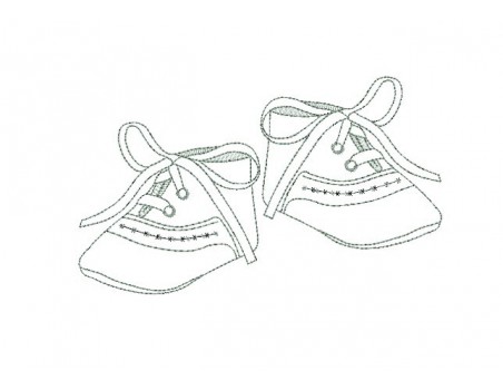 Des petits chaussons rétro à lacets à broder en redwork sur un pochon par exemple pour y mettre les petites affaires de bébé