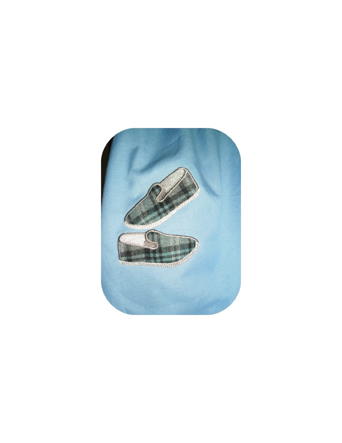 Les chaussons charentaises à broder en appliqué sur un pochon par pour y mettre les chaussons de ces messieurs qui partent en déplacement, ou bien encore pour ranger et personnaliser un cadeau pour les papis, ou simplement pour ranger les chaussons des enfants à la créche ou à l'école