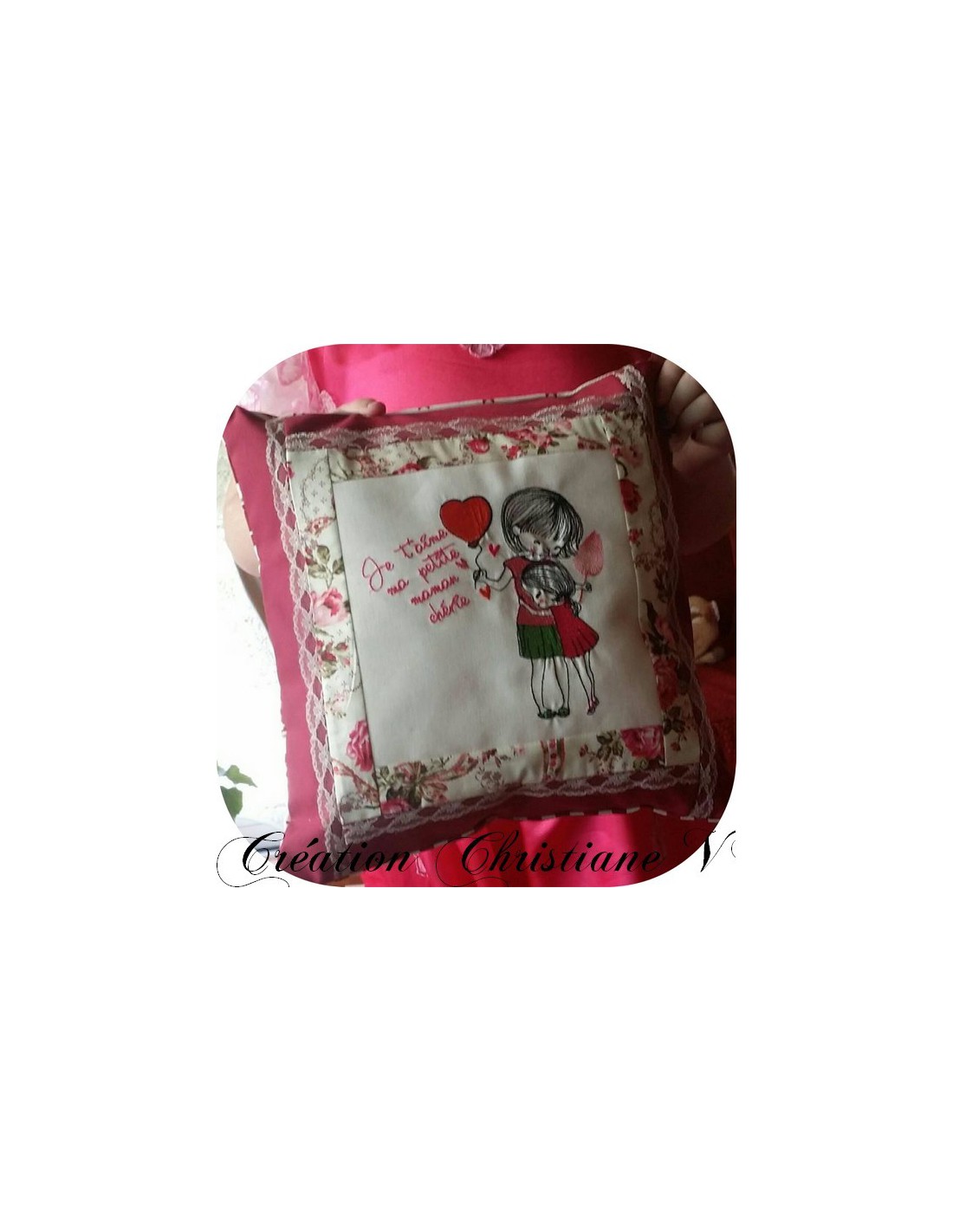Voici une petite fille souhaitant la fête des mères à broder sur vos diverses créations pour l'occasion