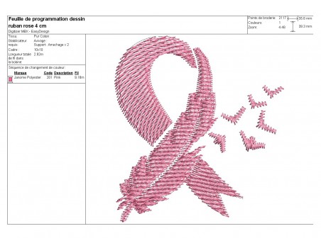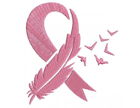 Voici un ruban rose avec les oiseaux à broder sur différentes créations pour le ccancer