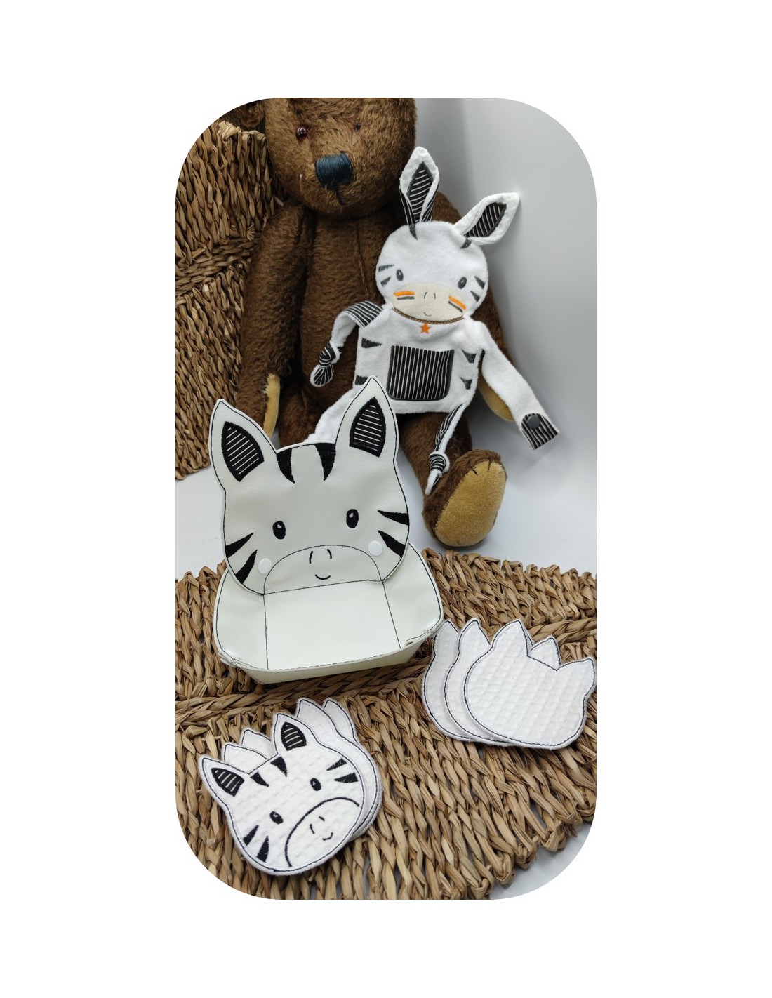 Voici des lingettes tête de zèbre entièrement doublé à broder en ITH