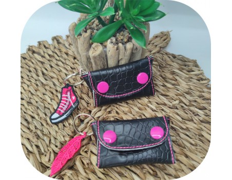 L'ensemble de pochettes pour y glisser des clés usb, des écouteurs, des clés, des cartes de fidélité, de la monnaie, des kleenex un jeton de caddy ect en fonction de la taille brodée