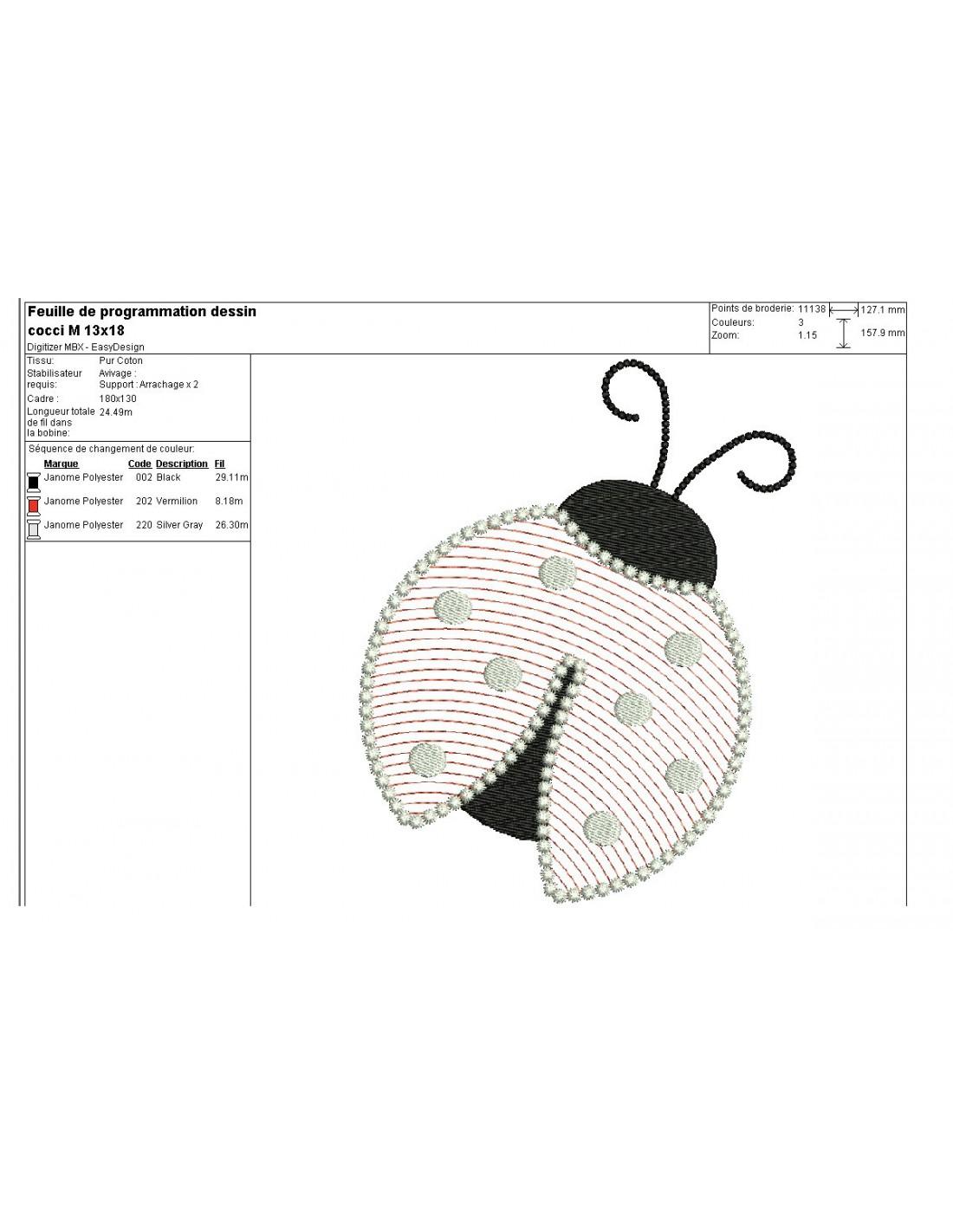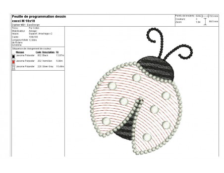 Motif de broderie machine coccinelle mylar