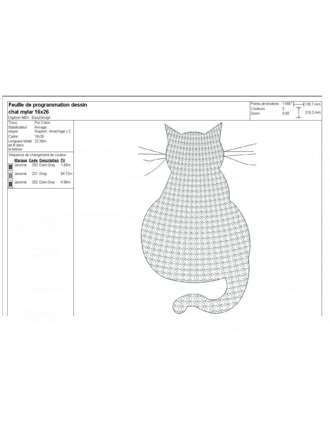 Voici un chat de dos en version mylar à broder sur de multiples créations