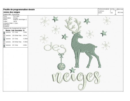 Motif de broderie machine renne des neiges