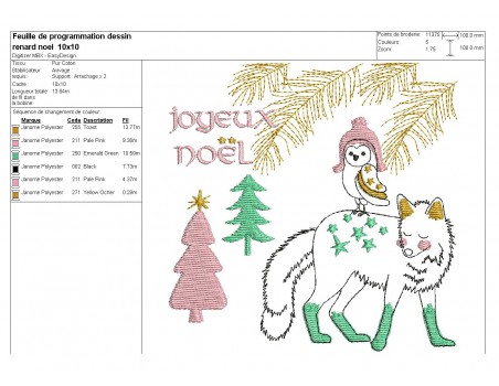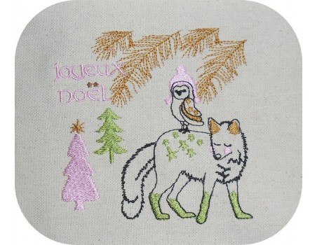 Voici un renard avec une chouette sur le dos à broder sur différentes créations
