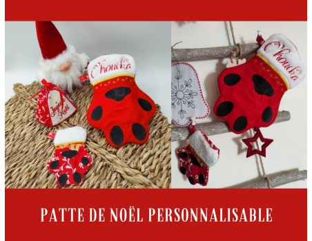 Voici les pattes de noël à broder tout dans le cadre pour y glissez des friandises ou jouets pour nos amis chiens ou chats