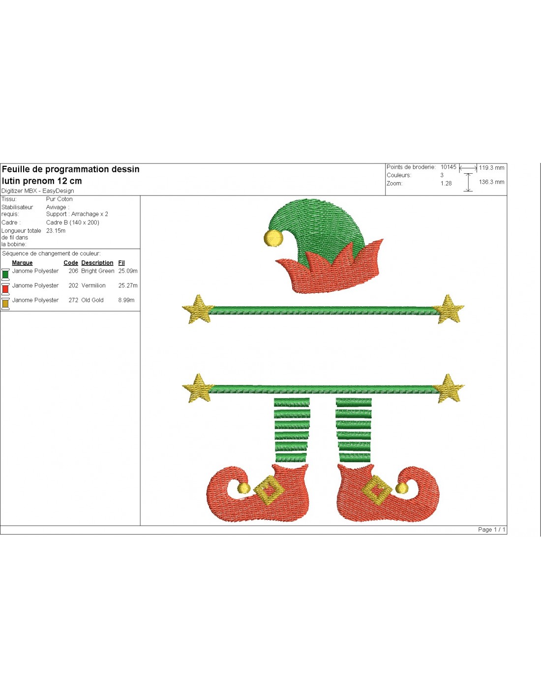 Voici un motif prénom avec le lutin de Noël a broder sur vos créations de fin d'année