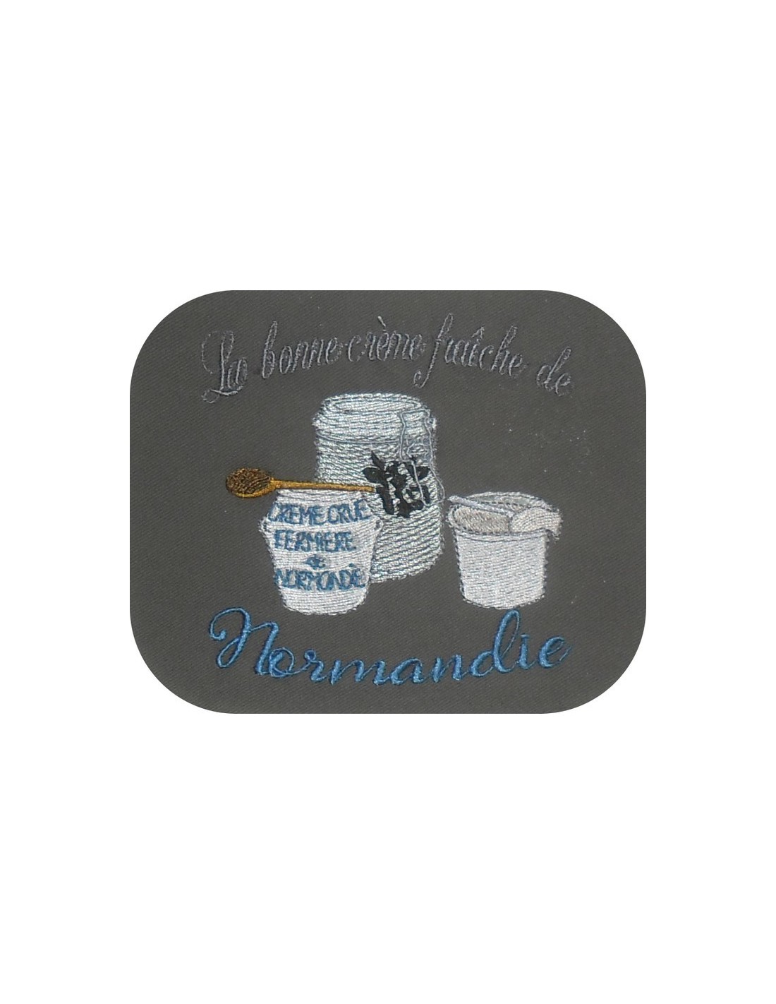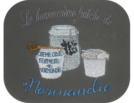 Voici un clin d'oeil à la Normandie avec ces pots de crème fraîche à broder sur vos créations