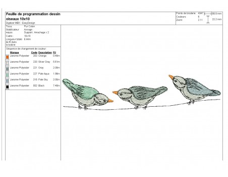 Voici un motif de broderie, des oiseaux sur une branche à broder sur diverses créations