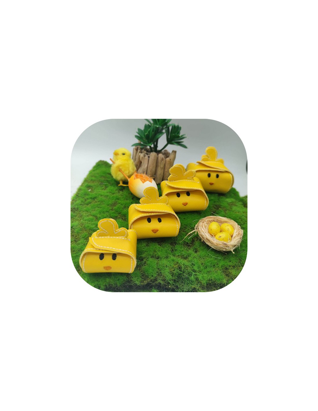 Voici un baluchon en forme de cocotte à broder tout dans le cadre pour y mettre des bonbons dedans , des chocolats de Pâques ou tout autre chose