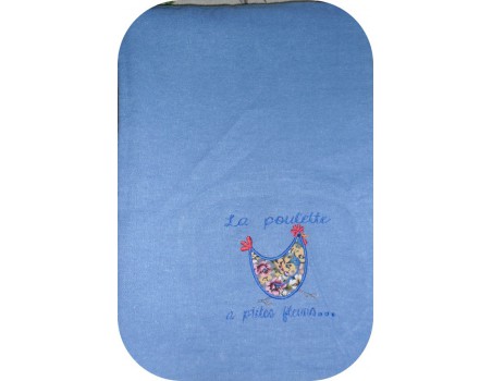 Voici une poulette à fleurs à broder en appliqué sur vos créations cuisine