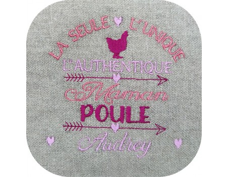 Voici un texte humour Maman poule à broder sur vos créations cuisine ou pas pour la fête des mères ou autres et à personnaliser avec un prénom ou un mot