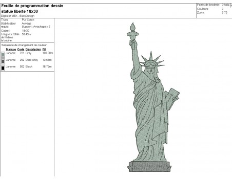 Voici la statue de la liberté à broder sur diverses créations pour votre décoration ou celle d'un ado ou encore sur un étui à téléphone, une trousse etc