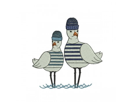 Voici des mouettes avec leurs pulls marins , à broder sur vos créations pour les amoureux de la Bretagne