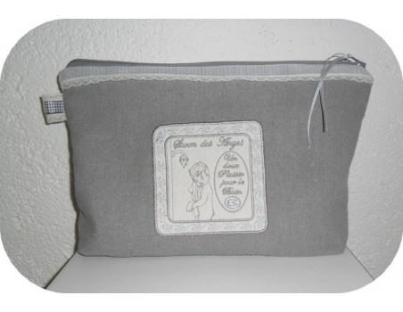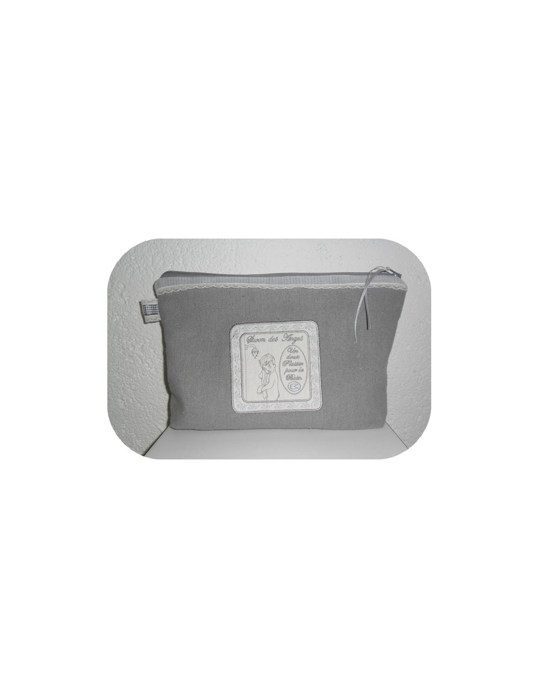 Voici un cadre savon des anges à broder en appliqué sur diverses créations comme une trousse de toilette, un vide poche ou un pochon pour la salle de bain