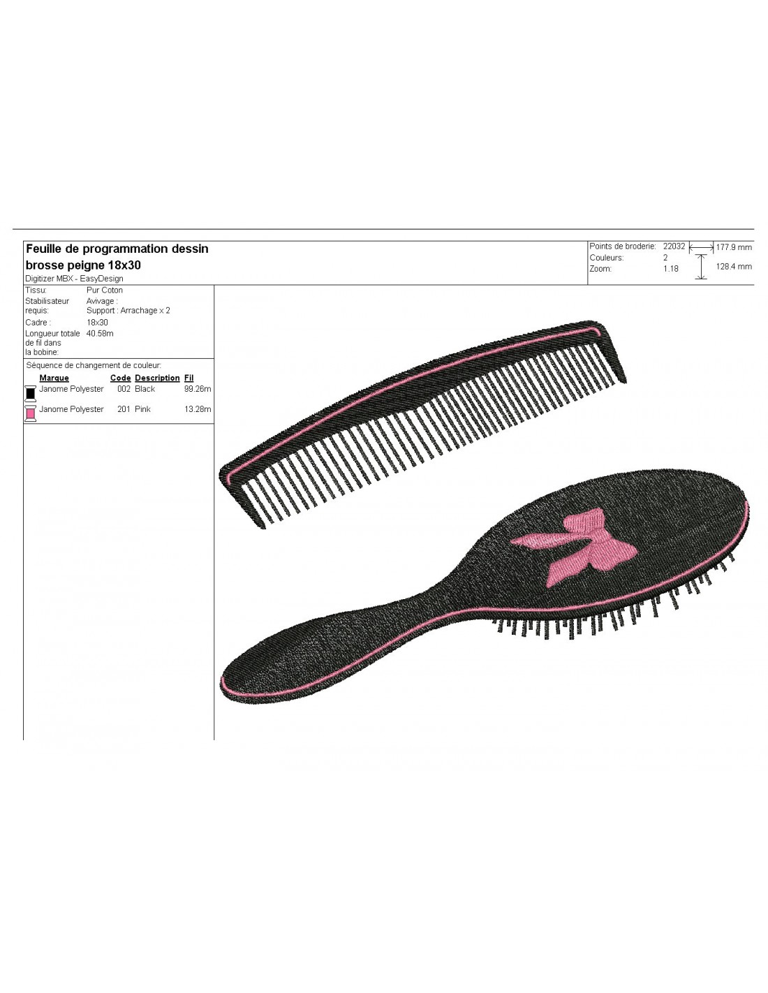 Ensemble d'une brosse et d'un peigne de coiffeuse à broder seul ou dans un cadre ou médaillon , sur une trousse, un drap de bain, une boite, libre à vous d'imaginer vos mises en scènes brodées