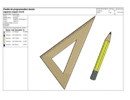 Voici une équerre et un crayon à broder sur diverses créations scolaires