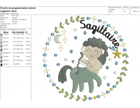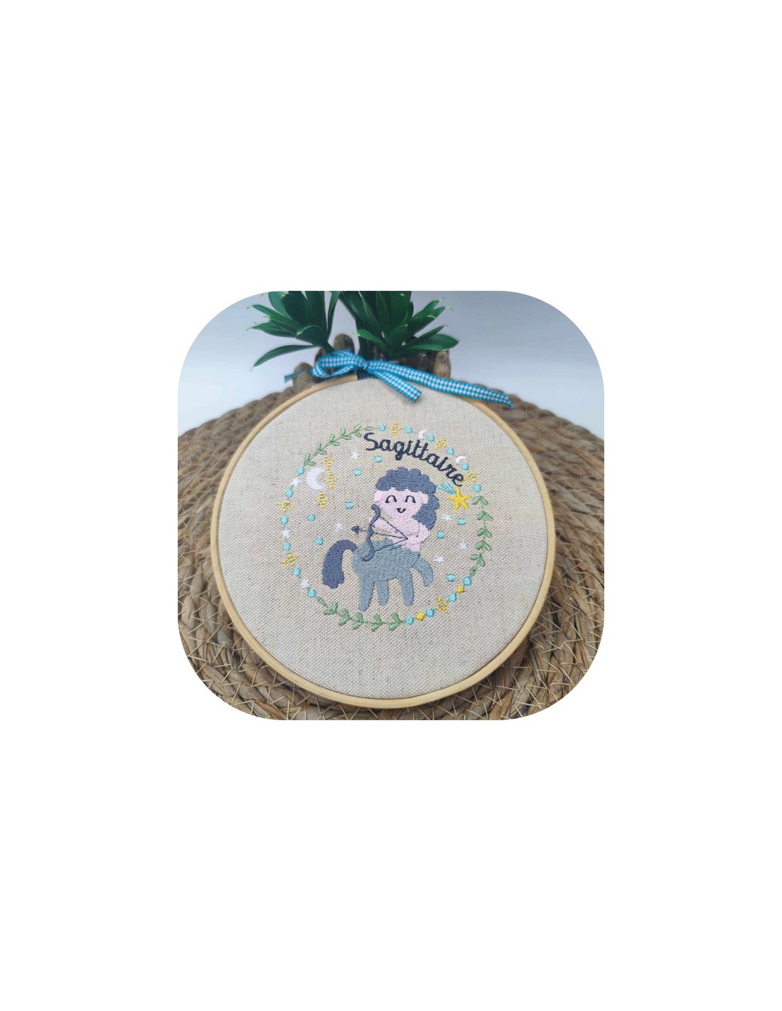 Voici dans le thème du zodiaque un petit sagittaire dans son encadrement à broder sur vos différentes créations comme un carnet de santé, un cadre, un bavoir, une pochette par exemple