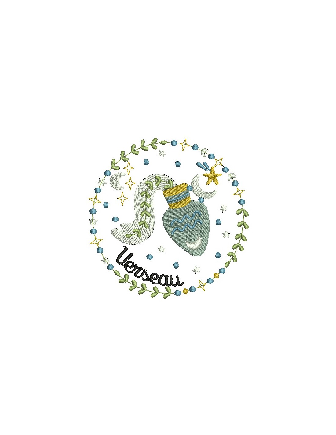 Motif de broderie machine signe astrologique verseau