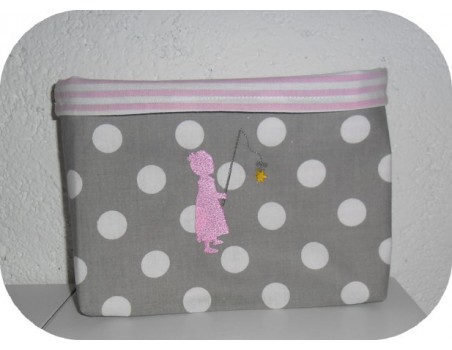 Voici une silhouette de petite fille avec une étoile à broder sur diverses créations pour enfants