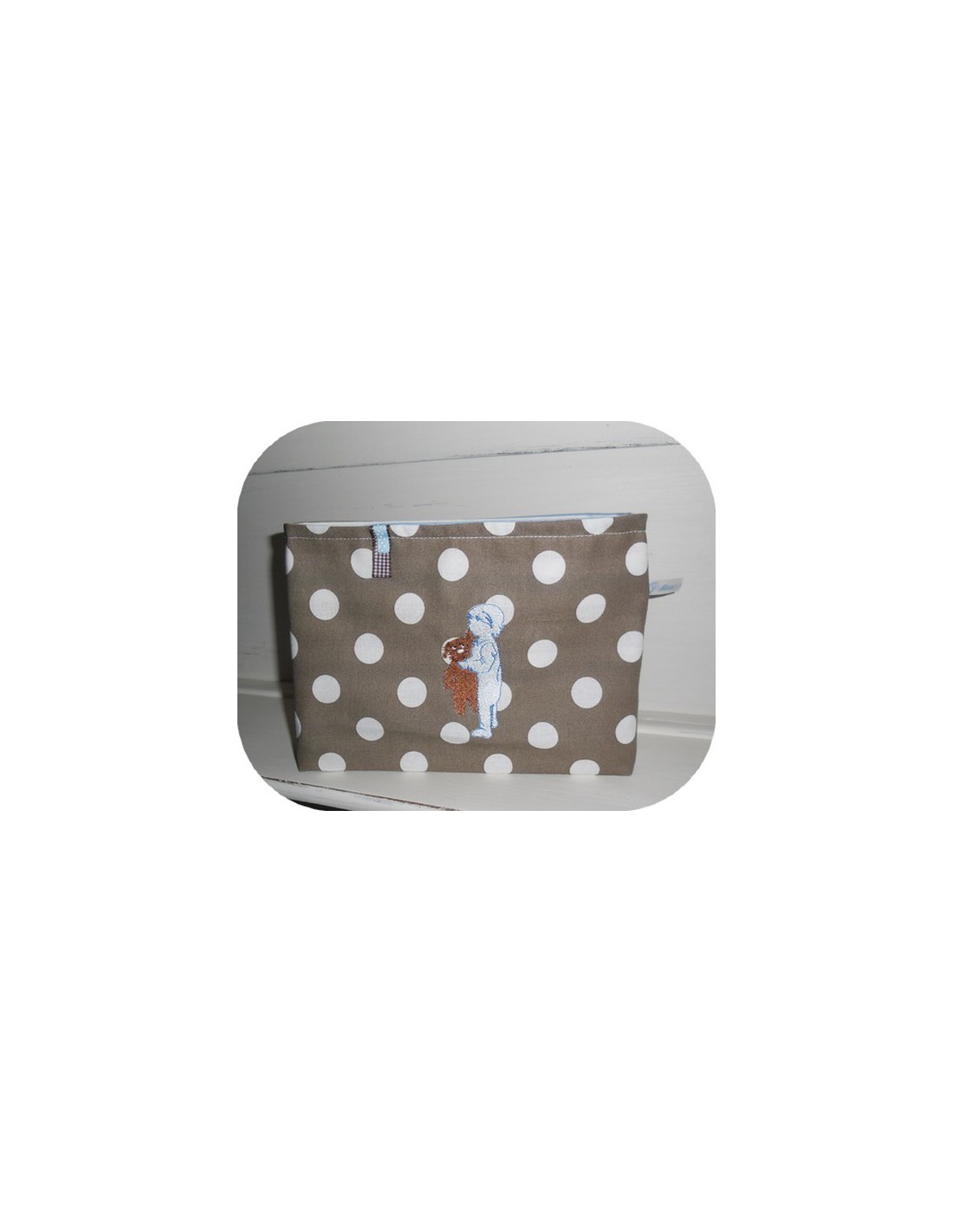 Voici une silhouette d'enfant avec son ours en peluche à broder sur diverses créations pour les enfants