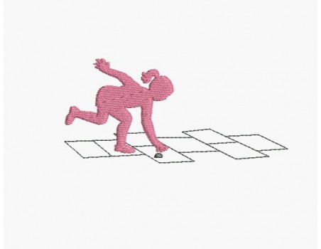 Voici une silhouette de petite fille jouant à la marelle à broder sur diverses créations