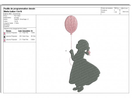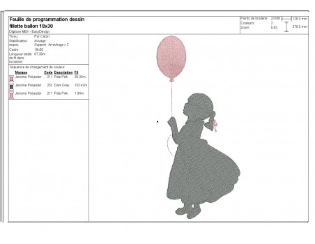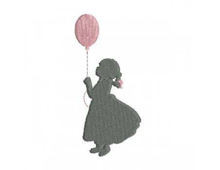 Voici une silhouette de petite fille avec un ballon à broder en ombre chinoise sur diverses créations