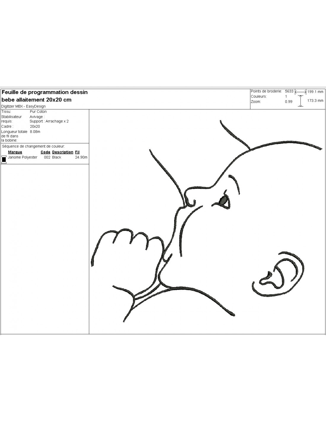 Voici un nouveau né prenant le sein à broder sur vos créations concernant l'allaitement