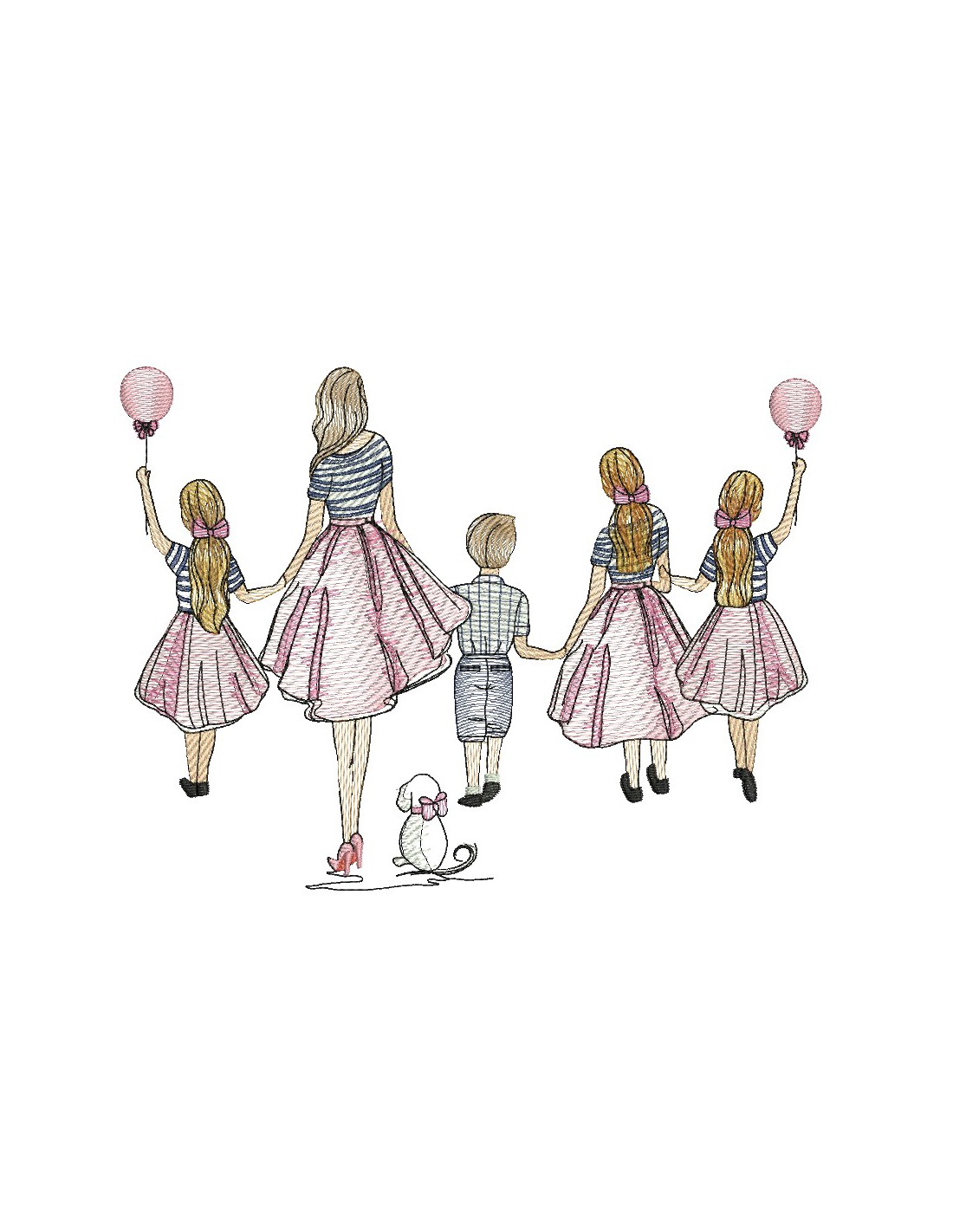 Voici une mère avec ses 3 grandes filles et son fils en broderie façon rippled ombré pour donner du mouvement et un style plus léger à vos créations