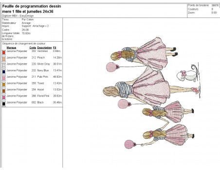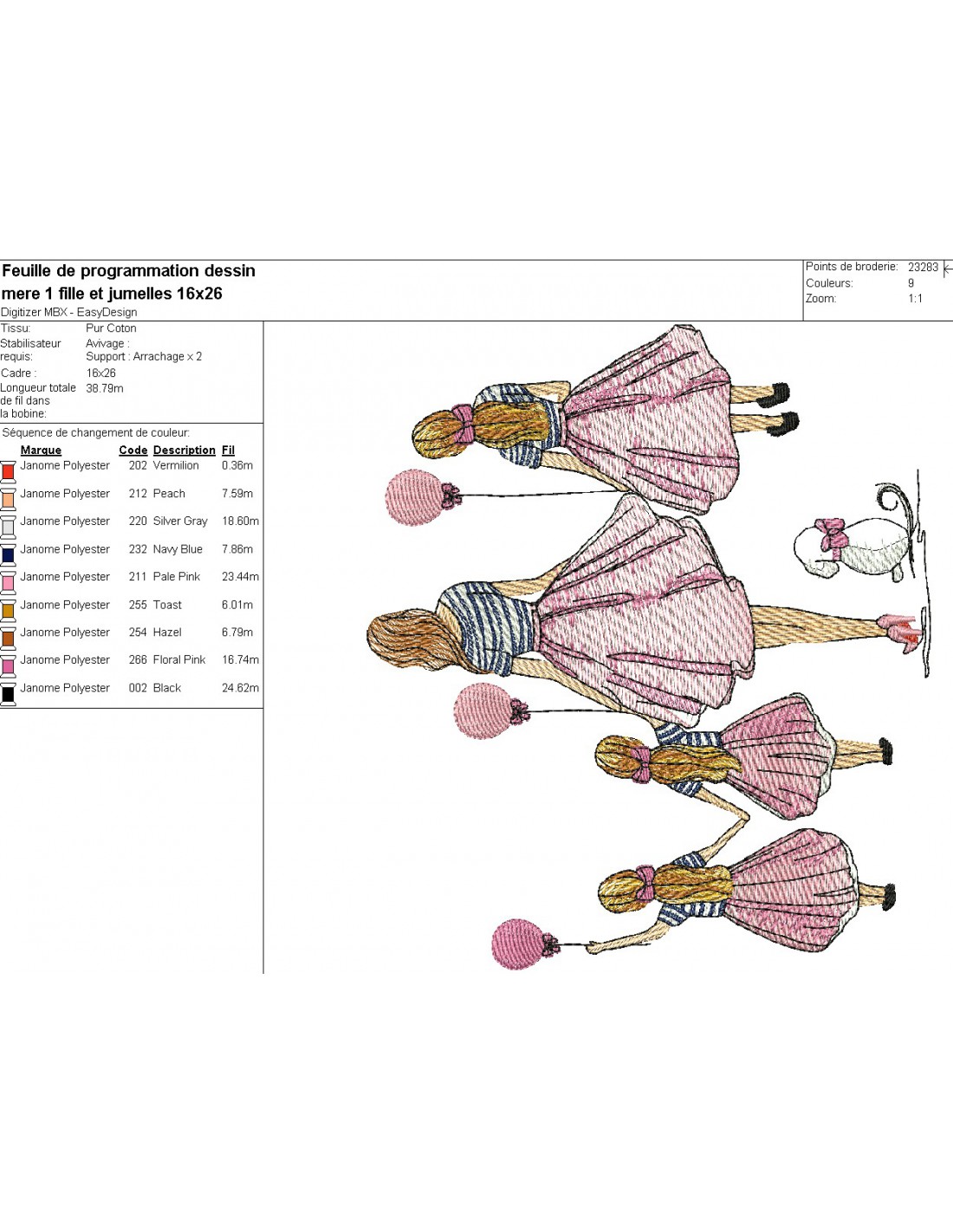 Motif de broderie machine mère avec sa fille et ses jumelles