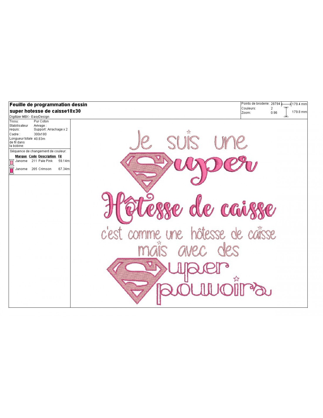 A broder sur diverses créations pour une hôtesse de caisse