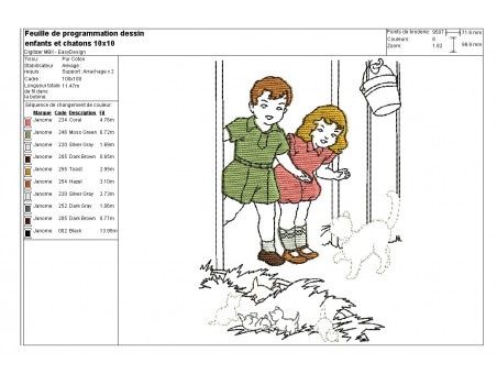 Voici des enfants et des chatons à broder dans un esprit rétro sur de bien diverses créations