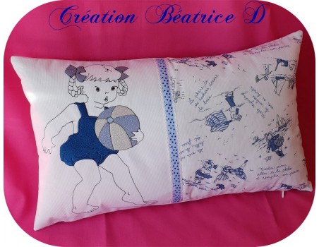 Motif de broderie machine petite fille à la plage