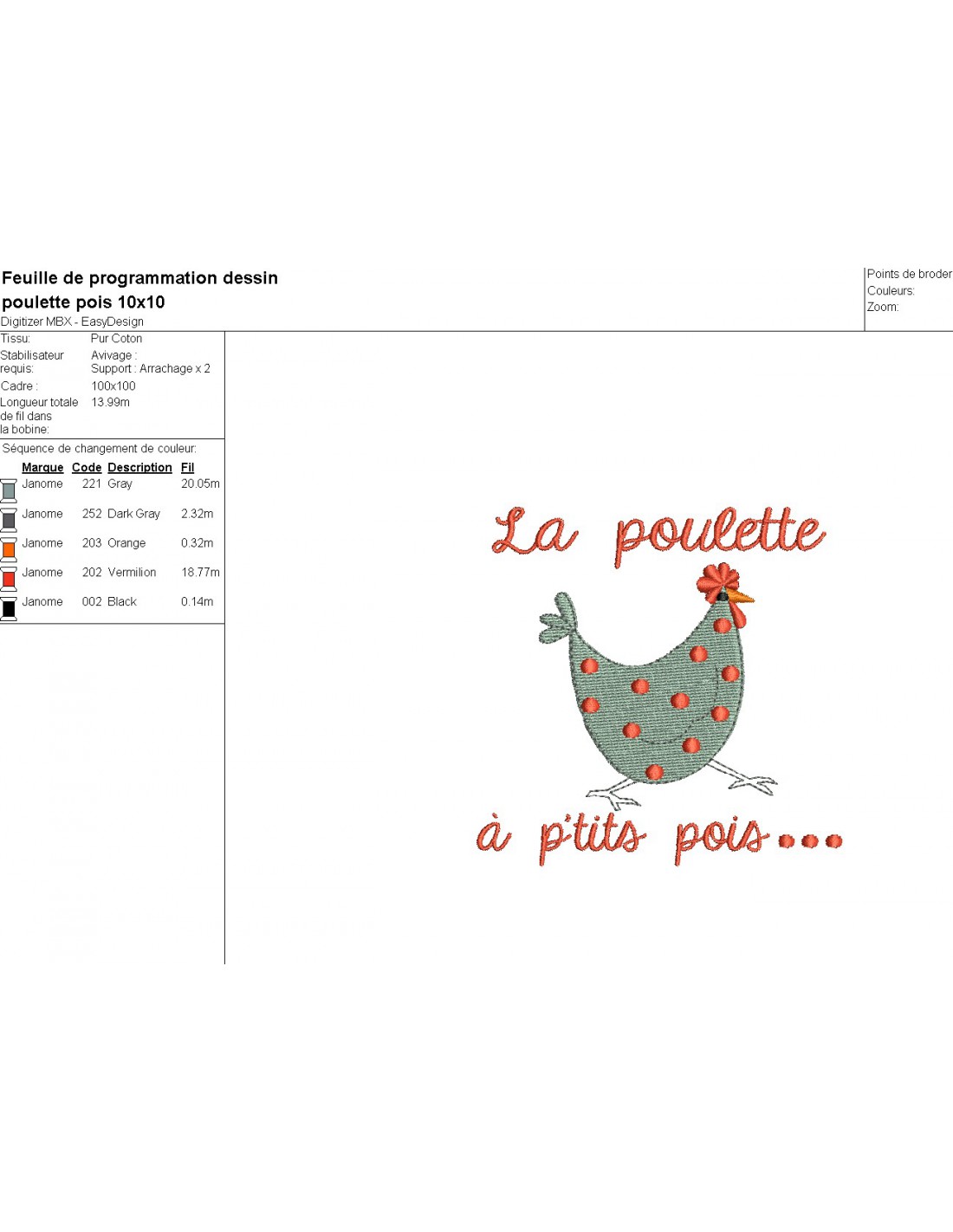 Motif de broderie machine poule à petits pois