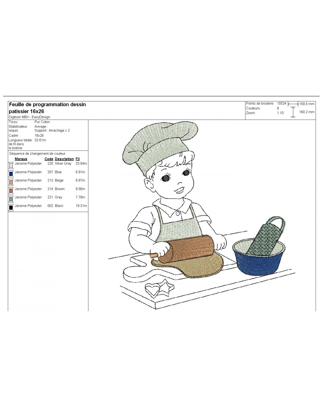 Voici un petit garçon faisant des gâteaux à broder dans un esprit rétro sur vos diverses créations